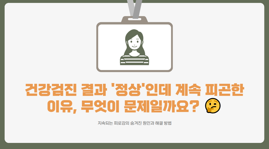 안녕하세요! 최근에 받은 건강검진 결과가 모두 정상이라며 안도한 경험, 모두 한 번쯤은 있으시죠? 그런데 그 결과를 받고 나서도 계속되는 피로감에 힘들어하시는 분들이 많습니다. "왜 이렇게 피곤할까?" 하는 의문이 든다면, 이번 글에서 그 원인과 해결 방법에 대해 자세히 알아보겠습니다.